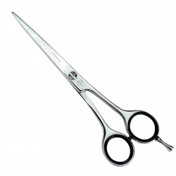 Tijeras 5,5" de línea clásica estudiadas para estilistas masculinos. Acero al carbono inoxidable especial. Tijeras con hojas internas cóncavas. Afilado con filo de navaja en ambas hojas para un corte más fino. Acabado pulido.